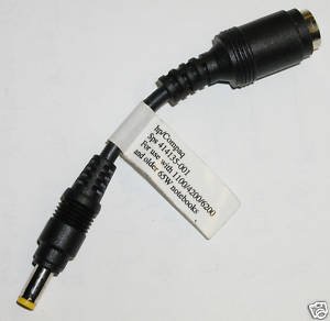 This dongle for 65-watt Smart adapter converts 3-pin Smart power connector to standard legacy power connector. This adapter is required when using a Smart AC adapter with an older non-Smart-compatible notebook PC. [endif] [if ]HP Compaq 414135-001 406823-001 Dongle 65w notebooks Smart AC Specifications
